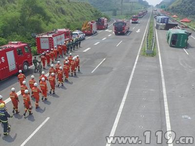廣西消防開(kāi)展高速公路交通事故救援跨區(qū)域演練
